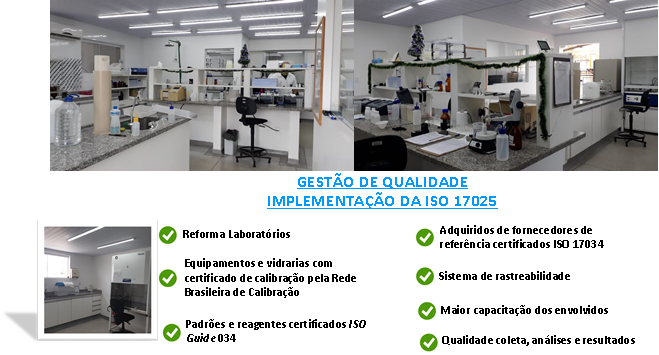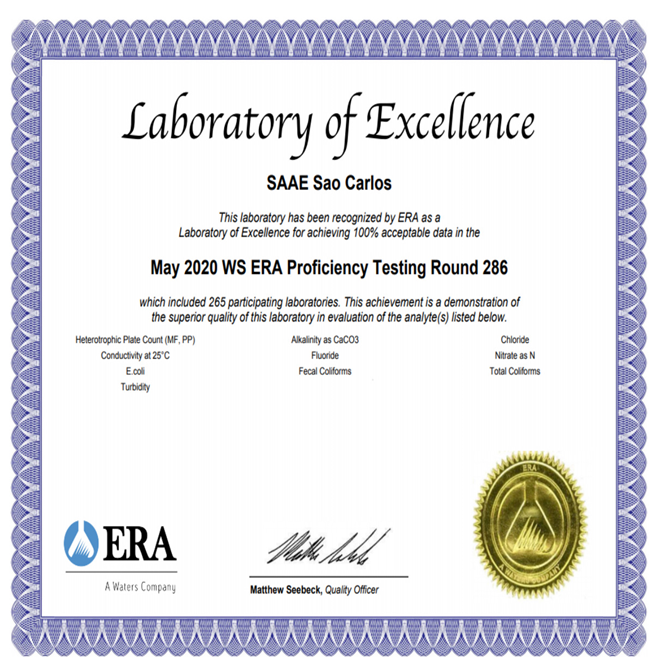Nossos laboratórios seguem os padrões do Sistema de Controle de Qualidade ABNT NBR ISO/IEC 17025:2017. Esta norma garante reconhecimento internacional aos laboratórios do SAAE e assegura que todas as análises realizadas seguem procedimentos específicos para que os resultados sejam obtidos com exatidão e precisão.
