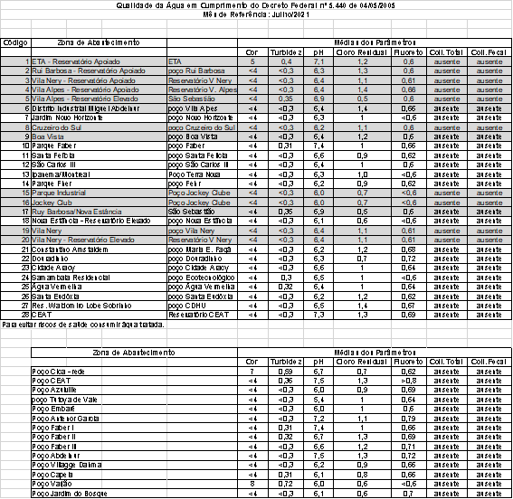 Resultado da Qualidade da Água